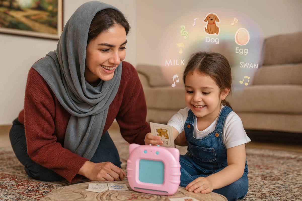 - هیجان کشف: وقتی فرزند شما کارت را داخل دستگاه قرار میدهد و صدای کلمه را میشنود، احساس میکند خودش کشف بزرگی کرده است. این حس کشف، انگیزهی او را برای ادامهی بازی بیشتر میکند.
