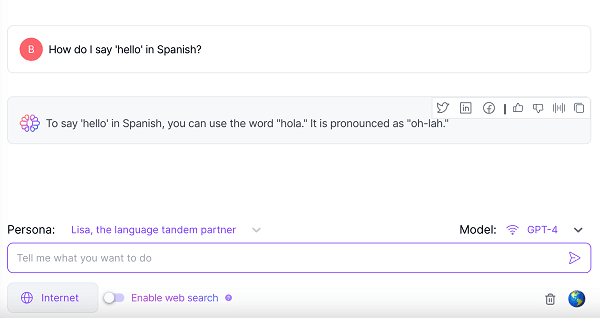 - استفاده از رباتهای گفتگویی یا chatbots که میتوانند با کاربران به زبان مورد نظر صحبت کنند. این رباتها میتوانند به کاربران کمک کنند که مکالمه را با موضوعات مختلف و در سطوح مختلف تمرین کنند. برخی از این رباتها عبارتند از: Mondly، Replika، Luka و غیره.